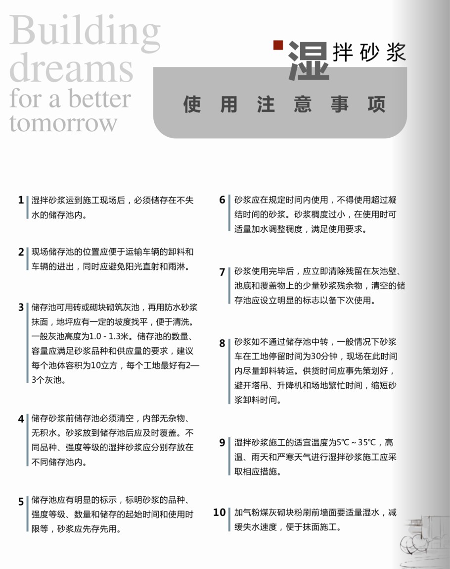 濕拌砂漿使用注意事項
